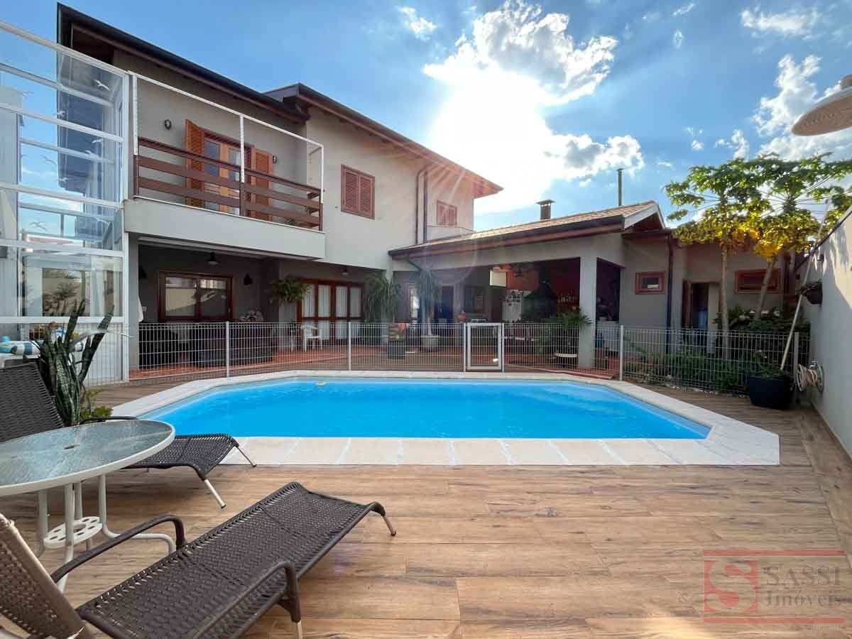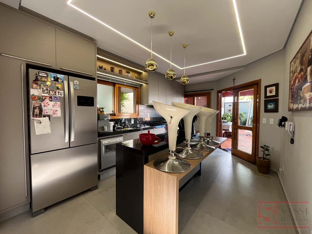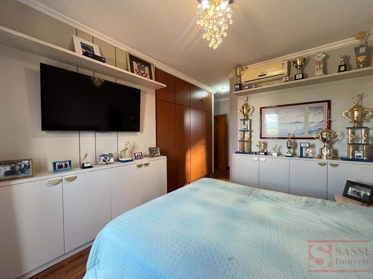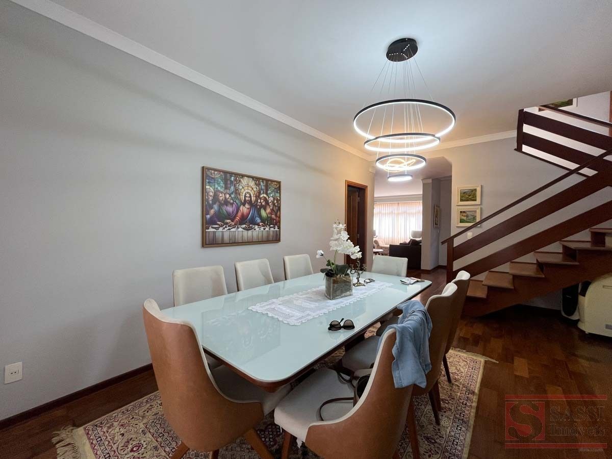 Este imóvel residencial oferece ambientes amplos e bem planejados para quem valoriza espaço e funcionalidade. No piso superior, conta com três dormitórios com armários planejados e ar-condicionado, sendo duas suítes com gabinete e box blindex, além de uma suíte master com sacada e escritório com armários planejados. Há ainda banheiro social que atende aos demais ambientes.No piso inferior, a casa dispõe de sala de estar, sala de jantar com armários planejados e sala de TV equipada com armários e ar-condicionado, além de lavabo. A cozinha conta com armários planejados e bancada em granito, acompanhada de banheiro de serviço, área de serviço com armários e espaço de despejo.A área externa é um destaque à parte, com espaço gourmet equipado com churrasqueira, forno de pizza, armários planejados e ventilador de teto, além de piscina com cascata e banheiro social externo. O imóvel ainda conta com elevador e garagem para quatro carros, sendo duas vagas cobertas.Com pisos em madeira e porcelanato e teto em laje com acabamento em gesso, a residência apresenta um padrão moderno e bem cuidado. Uma excelente oportunidade para quem busca um imóvel completo para viver e receber com qualidade. Agende sua visita e conheça pessoalmente.