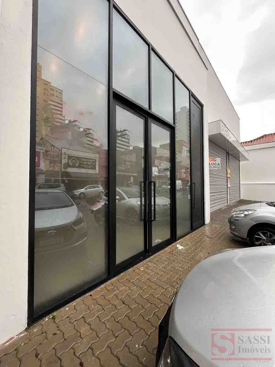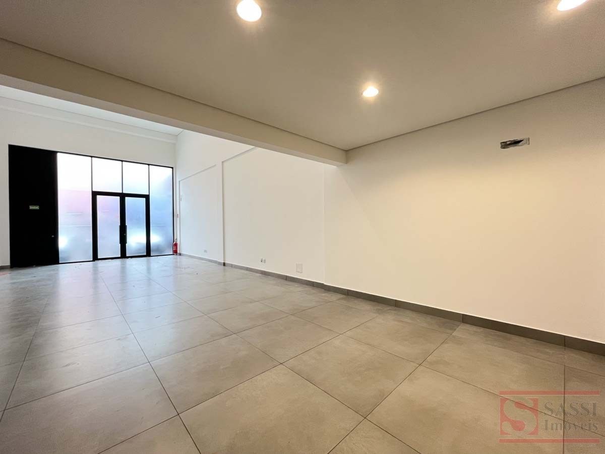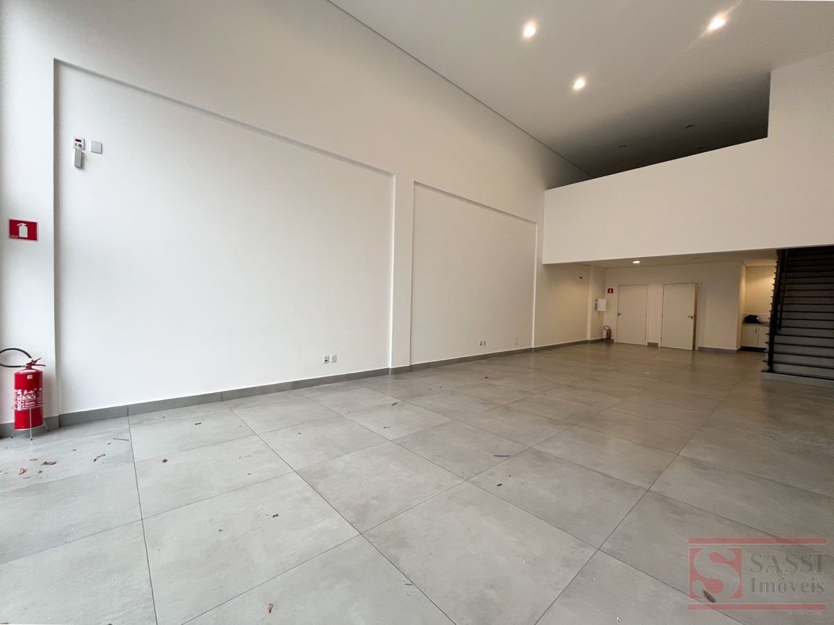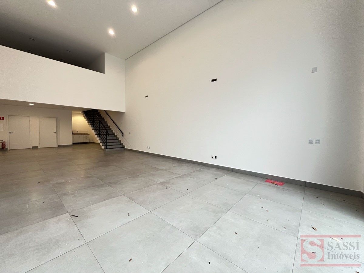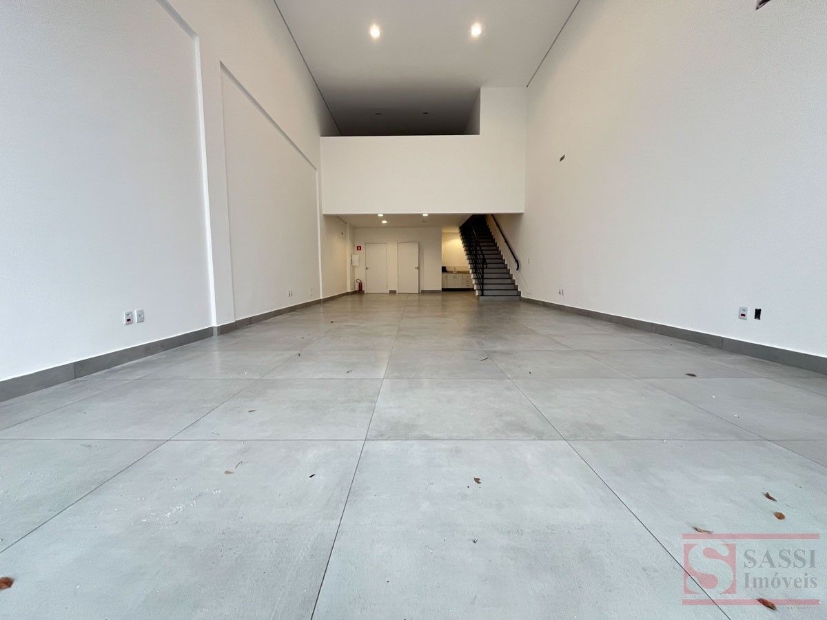 Salão comercial com mezanino e 2 vagas de recuoSalão comercial com aproximadamente 97 m², ideal para diversos tipos de comércio ou prestação de serviços. O imóvel possui ambientes bem distribuídos, proporcionando praticidade e funcionalidade para o seu negócio.Conta com copa equipada com gabinete planejado e pia de mármore, além de 02 banheiros sociais adaptados, sendo 01 com armário planejado.O imóvel dispõe ainda de mezanino no piso superior com aproximadamente 28 m², contendo 01 banheiro social, oferecendo espaço adicional que pode ser utilizado como escritório, estoque ou área administrativa.Na parte frontal, possui 02 vagas de recuo, facilitando o acesso de clientes.Acabamento com piso em porcelanato e teto em gesso, proporcionando um ambiente moderno e bem estruturado para atividades comerciais.