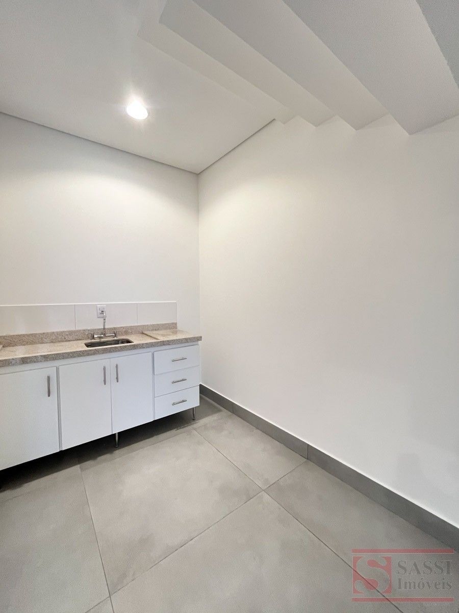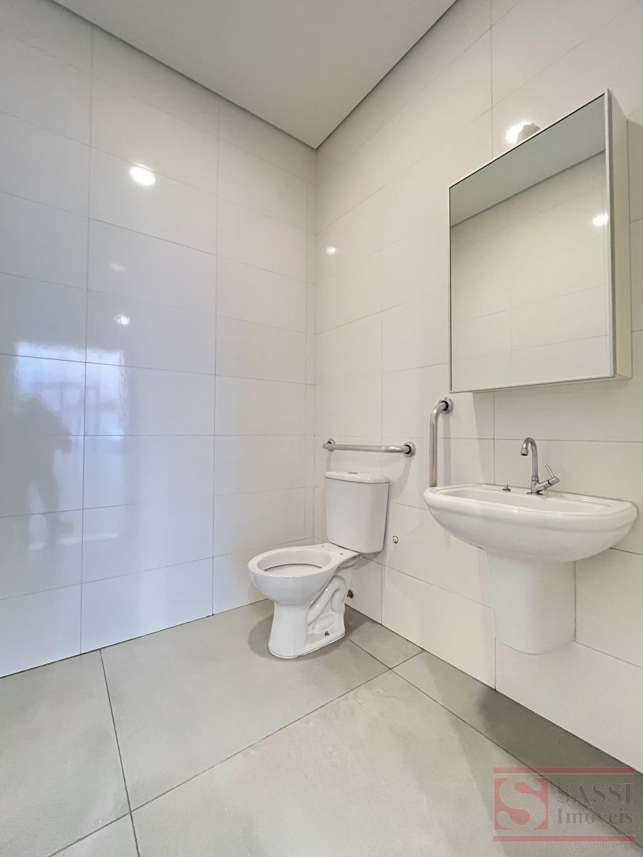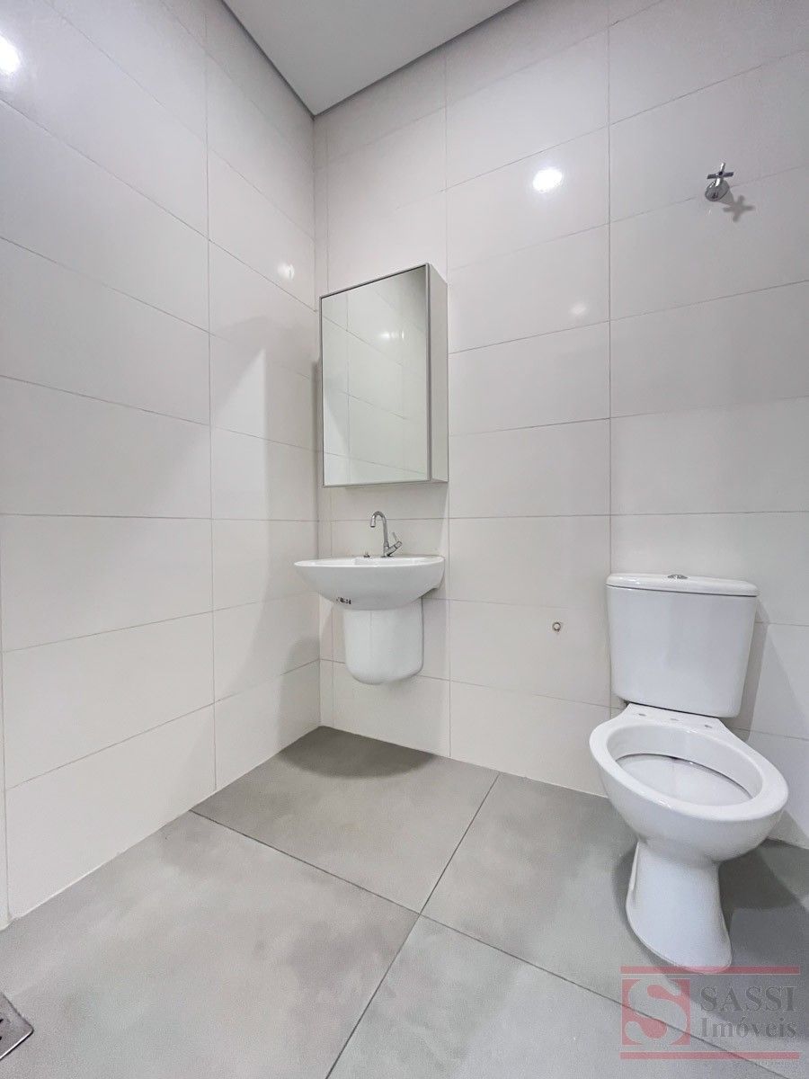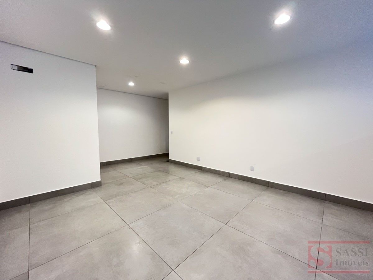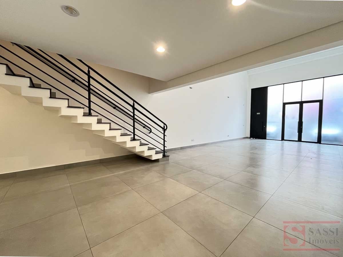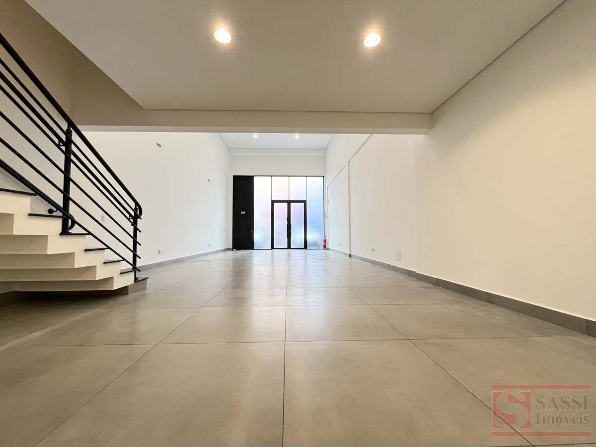 Salão comercial com mezanino e 2 vagas de recuoSalão comercial com aproximadamente 97 m², ideal para diversos tipos de comércio ou prestação de serviços. O imóvel possui ambientes bem distribuídos, proporcionando praticidade e funcionalidade para o seu negócio.Conta com copa equipada com gabinete planejado e pia de mármore, além de 02 banheiros sociais adaptados, sendo 01 com armário planejado.O imóvel dispõe ainda de mezanino no piso superior com aproximadamente 28 m², contendo 01 banheiro social, oferecendo espaço adicional que pode ser utilizado como escritório, estoque ou área administrativa.Na parte frontal, possui 02 vagas de recuo, facilitando o acesso de clientes.Acabamento com piso em porcelanato e teto em gesso, proporcionando um ambiente moderno e bem estruturado para atividades comerciais.