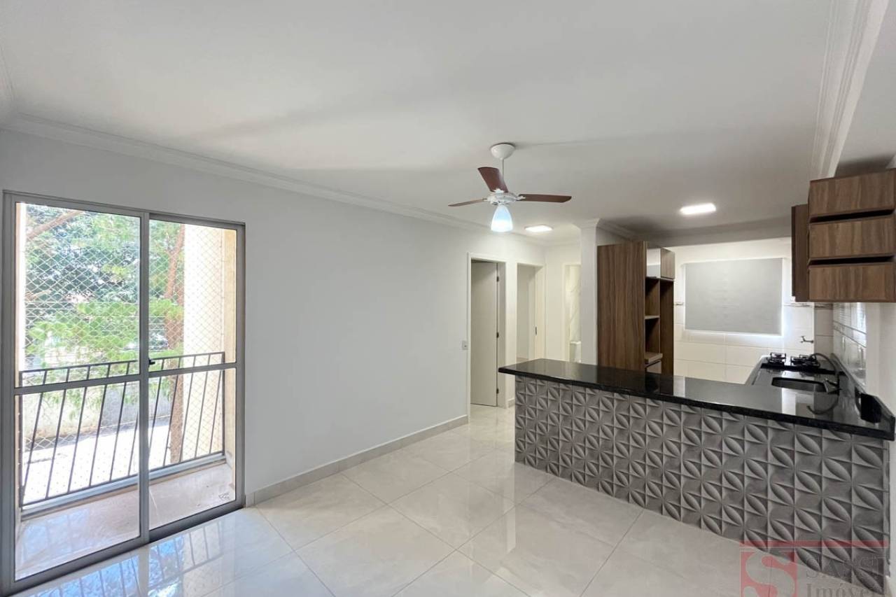 Apartamento funcional com sacada e planejados, pronto para morar |Este apartamento foi pensado para quem valoriza praticidade no dia a dia sem abrir mão de conforto. Com dois dormitórios protegidos por tela, sendo um deles equipado com ventilador de teto, o imóvel oferece ambientes bem distribuídos e agradáveis, ideais para descansar e viver com tranquilidade.A sala é acolhedora, conta com ventilador de teto e se integra a uma sacada também protegida, criando um espaço perfeito para momentos de relaxamento ou para receber visitas. A cozinha se destaca pelo bom aproveitamento de espaço, equipada com fogão cooktop, pia de granito, armários planejados e um balcão em granito que agrega funcionalidade e elegância ao ambiente. A lavanderia integrada traz ainda mais praticidade à rotina.O banheiro social possui lavatório com gabinete, mantendo o padrão de organização e bom gosto presente em todo o imóvel. O acabamento em porcelanato aliado ao teto em laje com detalhes em gesso reforça a sensação de um espaço moderno e bem cuidado.Para completar, o imóvel dispõe de uma vaga de garagem coberta, garantindo mais segurança e comodidade.Uma excelente oportunidade para quem busca um lar pronto para morar, com ótimo aproveitamento dos espaços e detalhes que fazem a diferença no dia a dia. Agende sua visita e venha conhecer de perto tudo o que este apartamento pode oferecer.