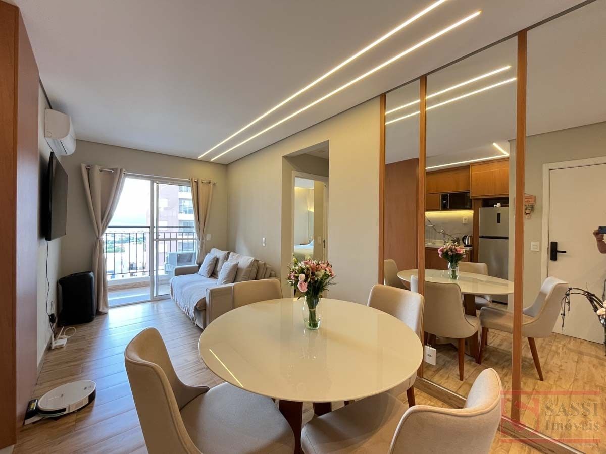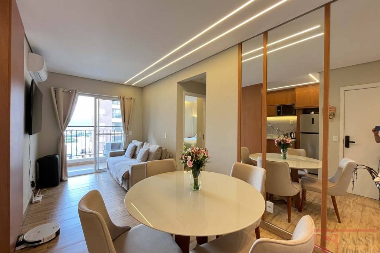 Apartamento completo com planejados, climatização e sacadaEste apartamento é a definição de conforto e praticidade para quem busca um lar pronto para morar, com acabamentos modernos e ambientes bem planejados. Com dois quartos, sendo um deles equipado com armário planejado e ar-condicionado, o imóvel oferece organização e bem-estar em cada detalhe.A sala em dois ambientes, também com ar-condicionado, proporciona um espaço amplo e aconchegante, integrado à sacada que traz mais ventilação e luminosidade natural, ideal para momentos de descanso ou convivência. A cozinha se destaca pelo alto nível de funcionalidade, contando com armários planejados, cooktop, forno elétrico, exaustor e interfone, oferecendo um ambiente completo e pronto para uso.A lavanderia integrada mantém o padrão de organização, também equipada com armários planejados, otimizando o espaço de forma inteligente. O banheiro social possui box em blindex, agregando modernidade e praticidade ao dia a dia.O acabamento em porcelanato aliado ao teto em gesso valoriza ainda mais os ambientes, trazendo um toque contemporâneo e elegante. A vaga de garagem coberta garante segurança e comodidade.Uma excelente oportunidade para quem deseja morar com conforto, estilo e tudo à mão. Agende sua visita e encante-se com este imóvel.