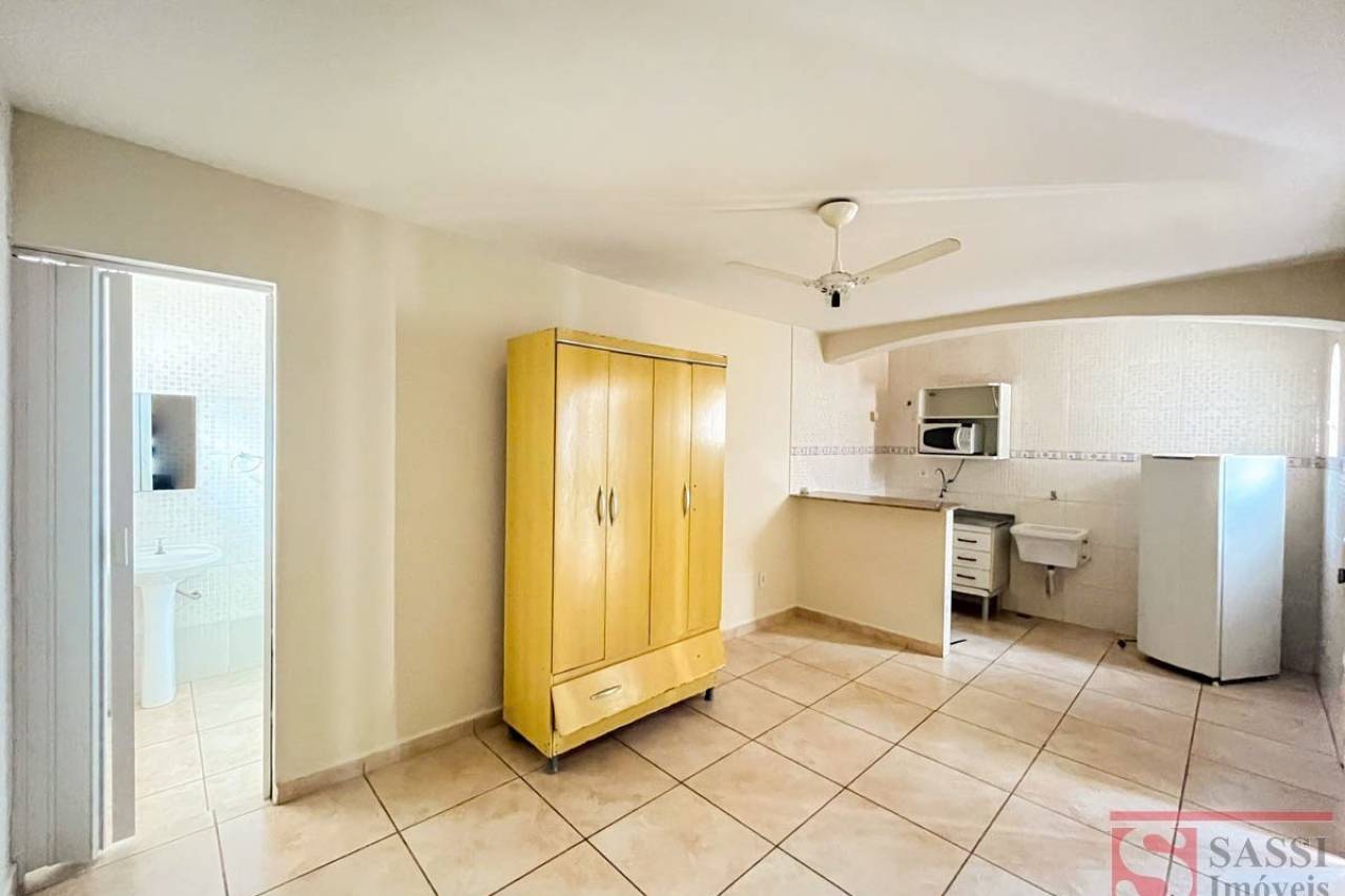 Kitnet com Área Gourmet e Piscina Ideal para quem busca praticidade, esta kitnet oferece um ambiente funcional e pronto para morar. O dormitório é integrado à sala e à cozinha, criando um espaço moderno e bem aproveitado, equipado com ventilador de teto para maior conforto no dia a dia.A cozinha conta com pia em inox, armários, micro-ondas e geladeira, proporcionando praticidade desde o primeiro dia. O banheiro social possui box blindex, garantindo um acabamento mais moderno e fácil manutenção. A lavanderia é integrada à cozinha, além de contar com área de serviço compartilhada equipada com máquina de lavar e tanque, trazendo ainda mais comodidade.Como diferencial, o imóvel oferece uma agradável área gourmet compartilhada com churrasqueira, mesa e piscina, perfeita para momentos de lazer e confraternização. Com piso cerâmico e teto em laje, a kitnet une resistência, funcionalidade e conforto em um só espaço.Uma excelente oportunidade para quem deseja morar em um ambiente completo, organizado e com lazer à disposição. Agende sua visita e venha conhecer de perto tudo o que esse imóvel pode oferecer.