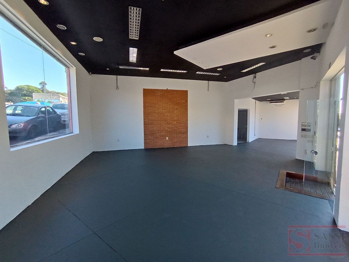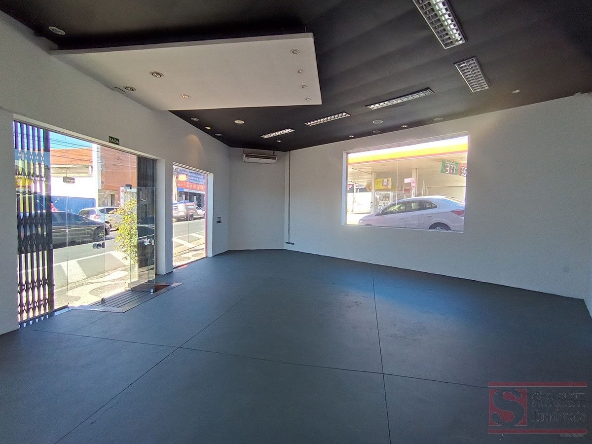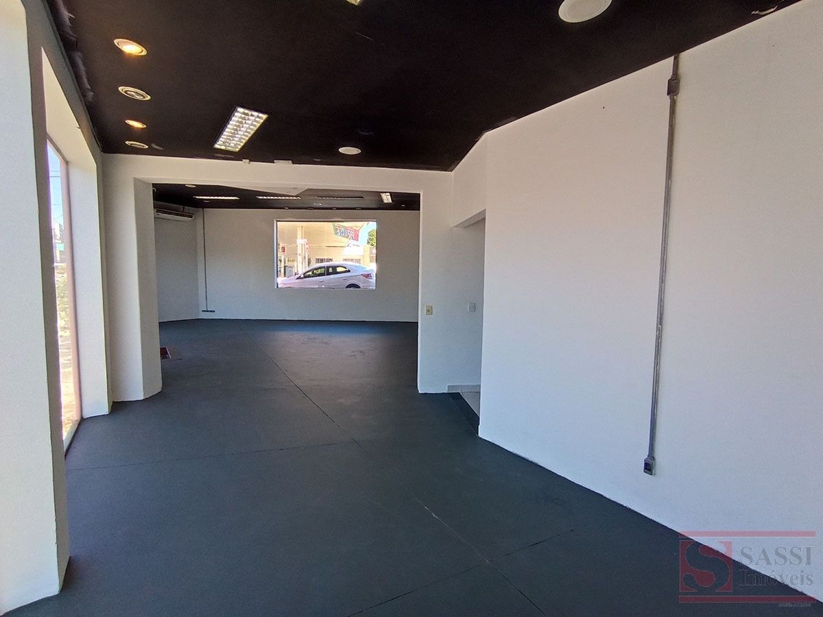 Amplo salão com aproximadamente 100 m², ideal para comércios e serviços. Conta com 2 banheiros, piso cerâmico e contrapiso, além de teto em laje com acabamento em gesso.