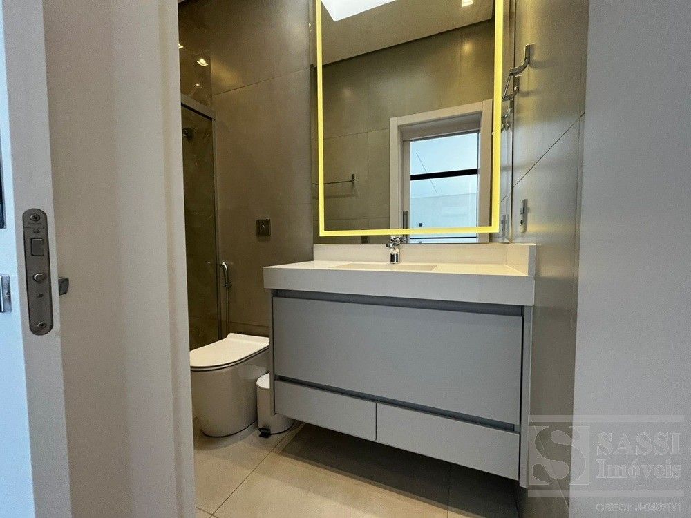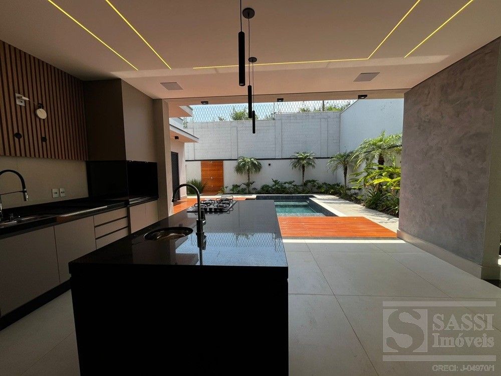 Linda casa térrea, com conforto e Sofisticação em Cada Detalhe com: 03 suítes, sendo 01 máster com closet, duchas e cubas duplas, todos com planejados, iluminação elegante em LED e climatizados. Conta ainda com escritório planejado com banheiro, ideal para quem trabalha em home office. A sala para dois ambientes possui painel ripado com iluminação em LED e caixas de som JBL, integrando-se perfeitamente à cozinha americana planejada, equipada com geladeira, fogão cooktop, forno e micro-ondas Brastemp, lava-louças Brastemp e depurador Franke. A lavanderia também é planejada e já conta com máquina de lavar e secar LG. Na área externa, destaque para a área gourmet completa, equipada com geladeira Brastemp, cooktop e caixa de som JBL, além de banheiro externo. A piscina com hidro e prainha é cercada por um deck de madeira garapeira (10,3 cm), proporcionando um espaço perfeito para lazer e relaxamento. Garagem para 03 veículos, sendo 02 vagas cobertas.