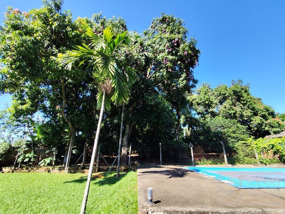 Chácara no asfalto com 4.600,00m² de terreno, com muita área verde, 2 pomares frutíferos bem diversificado, campo de futebol, piscina, chiqueiro, despejo, galpão garagem para 4 carros.Casa com 2 dormitórios, sala, cozinha, banheiro, lavanderia, varanda e uma enorme área gourmet com churrasqueira, salão e banheiros masculino e feminino.Totalmente cercada de alambrado.