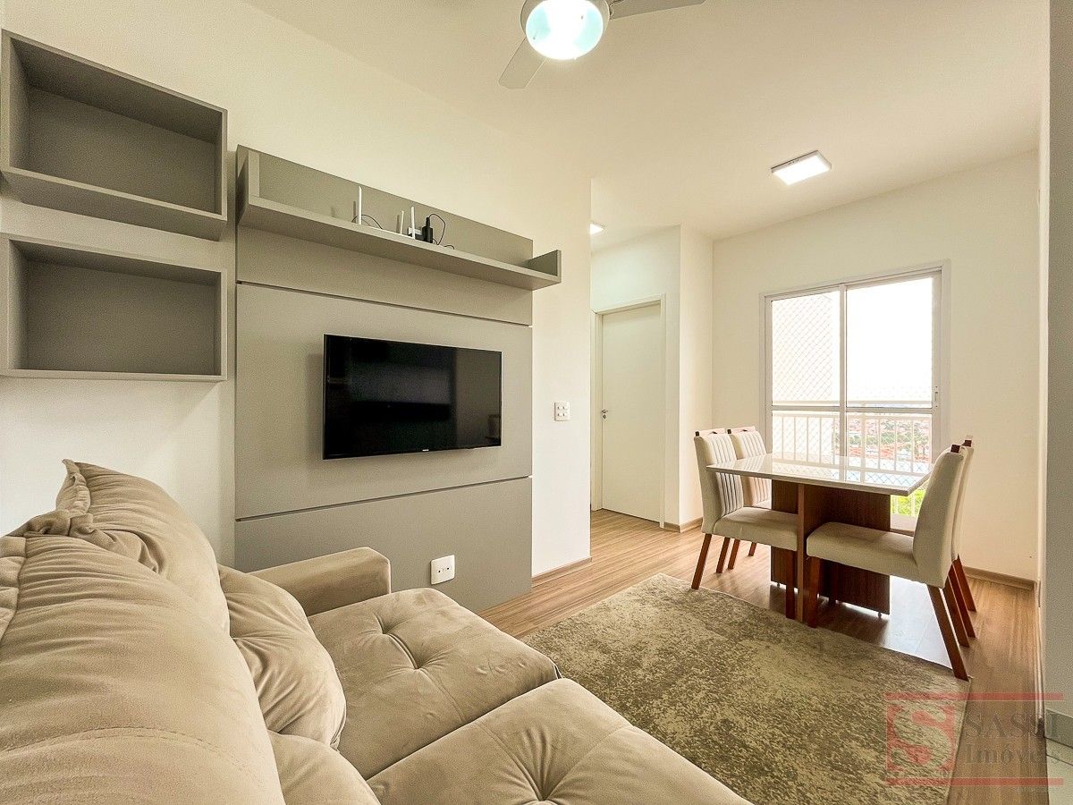 Apartamento Mobiliado e Completo na Vila Camargo Praticidade, conforto e excelente aproveitamento de espaço definem este apartamento na Vila Camargo, ideal para quem busca entrar e morar. O imóvel conta com 2 dormitórios equipados com ventiladores de teto com controle remoto, sendo 1 suíte totalmente mobiliada com guarda-roupa, cama box, painel de TV, gabinete planejado e box em blindex.A sala é aconchegante e funcional, já mobiliada com sofá, mesa com cadeiras, painel de TV com televisão e ventilador de teto com controle remoto, além de sacada com rede de proteção. A cozinha possui móveis planejados, gabinete com pia em granito, geladeira, micro-ondas e cooktop, integrada à lavanderia equipada com máquina de lavar. O banheiro social também conta com gabinete planejado e box em blindex.O apartamento dispõe de aquecimento a gás, piso laminado, teto em laje e oferece vaga de garagem coberta para 1 carro ao lado do elevador, além de vaga exclusiva para moto. Uma excelente opção para quem busca conforto, praticidade e localização estratégica.
