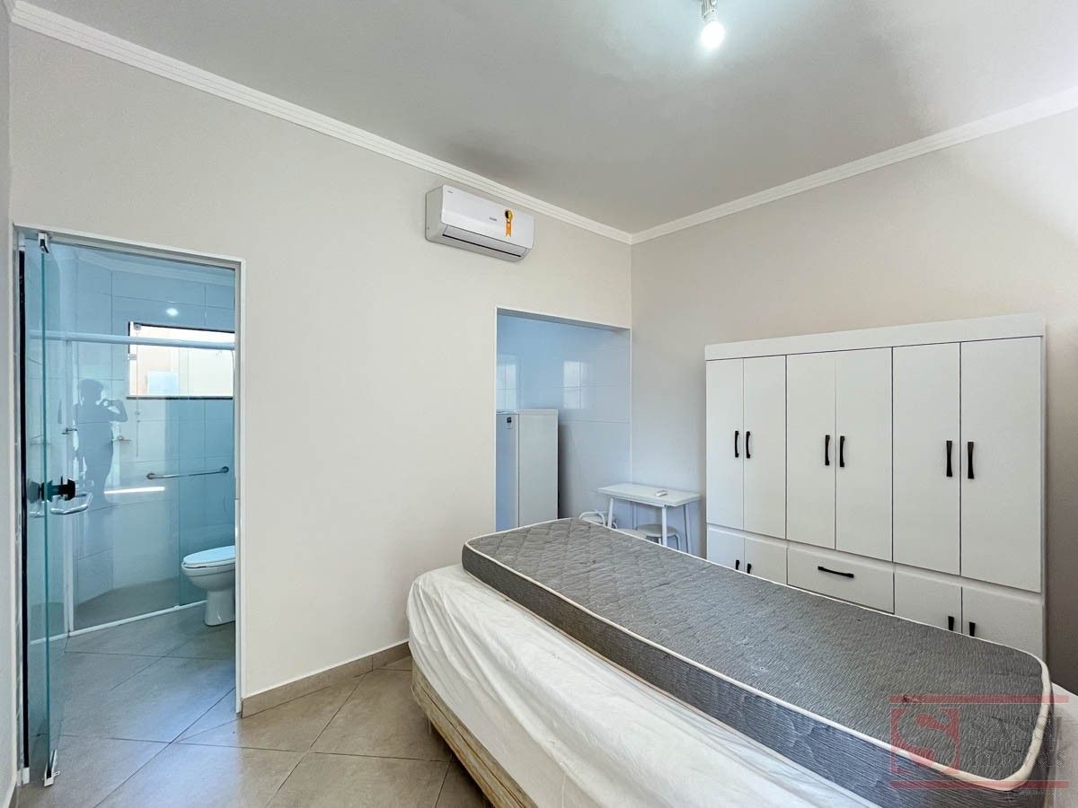 Kitnet Mobiliada com Ar-Condicionado e Excelente AcabamentoKitnet prática e bem equipada, ideal para quem busca conforto e funcionalidade em um espaço compacto. O imóvel conta com 01 dormitório já mobiliado com guarda-roupa, ar-condicionado, 01 colchão de solteiro e 01 colchão de casal, oferecendo comodidade imediata para moradia.A cozinha é equipada com pia de mármore com armário, geladeira e fogão por indução, proporcionando praticidade no preparo das refeições. A sala dispõe de ventilador de teto, garantindo maior conforto térmico no ambiente.O banheiro social possui box de blindex, trazendo um acabamento mais moderno e funcional. O imóvel conta ainda com lavanderia, oferecendo mais praticidade no dia a dia.Com piso em porcelanato e teto em laje com acabamento em gesso, a kitnet apresenta um ambiente bem acabado, moderno e de fácil manutenção.Uma excelente opção para quem procura praticidade, conforto e um imóvel pronto para morar.