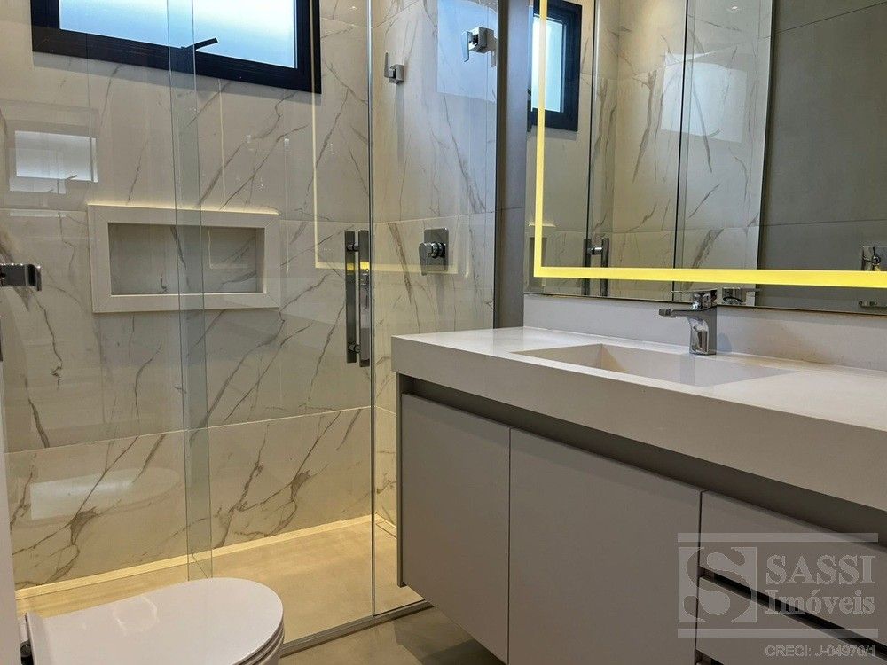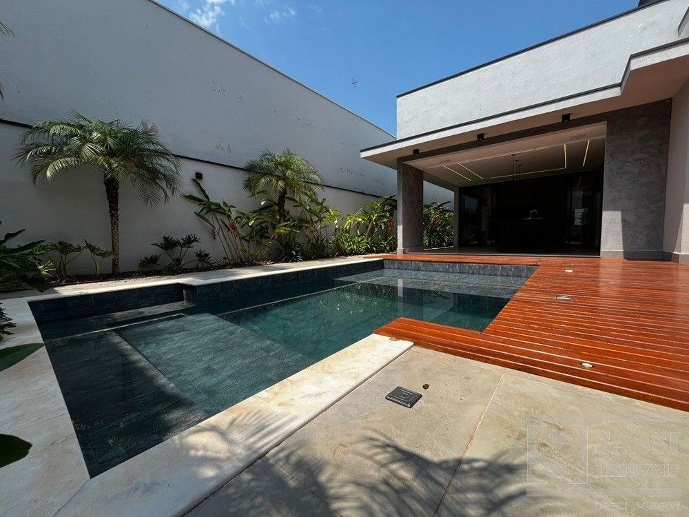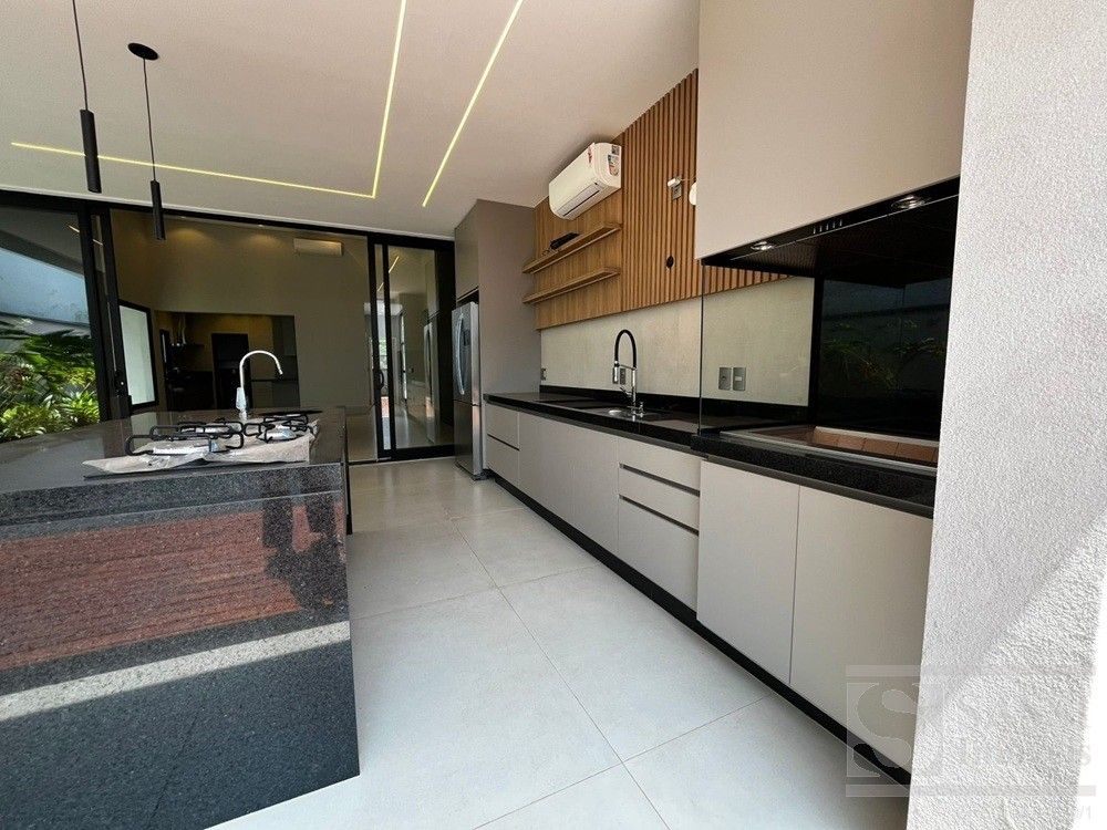 Linda casa térrea, com conforto e Sofisticação em Cada Detalhe com: 03 suítes, sendo 01 máster com closet, duchas e cubas duplas, todos com planejados, iluminação elegante em LED e climatizados. Conta ainda com escritório planejado com banheiro, ideal para quem trabalha em home office. A sala para dois ambientes possui painel ripado com iluminação em LED e caixas de som JBL, integrando-se perfeitamente à cozinha americana planejada, equipada com geladeira, fogão cooktop, forno e micro-ondas Brastemp, lava-louças Brastemp e depurador Franke. A lavanderia também é planejada e já conta com máquina de lavar e secar LG. Na área externa, destaque para a área gourmet completa, equipada com geladeira Brastemp, cooktop e caixa de som JBL, além de banheiro externo. A piscina com hidro e prainha é cercada por um deck de madeira garapeira (10,3 cm), proporcionando um espaço perfeito para lazer e relaxamento. Garagem para 03 veículos, sendo 02 vagas cobertas.