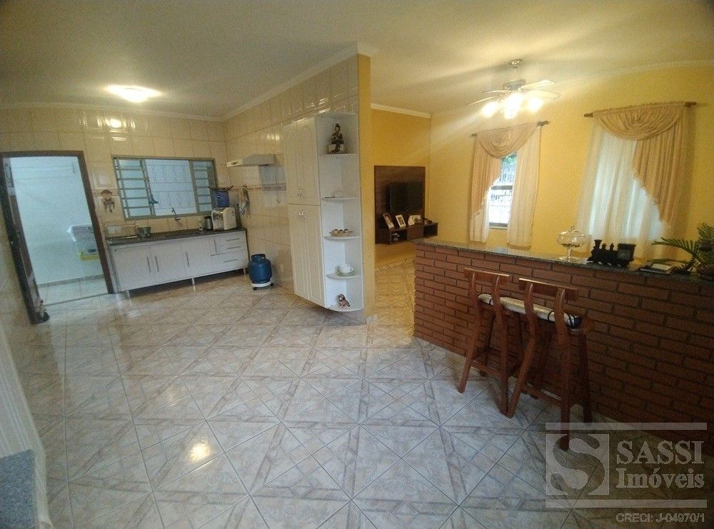 CASA À VENDA NA VILA PIZA. Imóvel residencial muito bem distribuído, composto por 02 dormitórios, sendo 01 suíte com box em blindex, sala ampla para 02 ambientes (TV e jantar), com balcão em mármore, cozinha espaçosa, integrada, com pia em granito, gabinete, armários e totalmente azulejada, banheiro social completo, com gabinete, espelho e box em blindex. A área externa conta com área de serviço coberta, quintal nos fundos, vaga para 03 carros. Nos fundos edícula com sala e 01 dormitório, ideal para hóspedes ou renda extra.