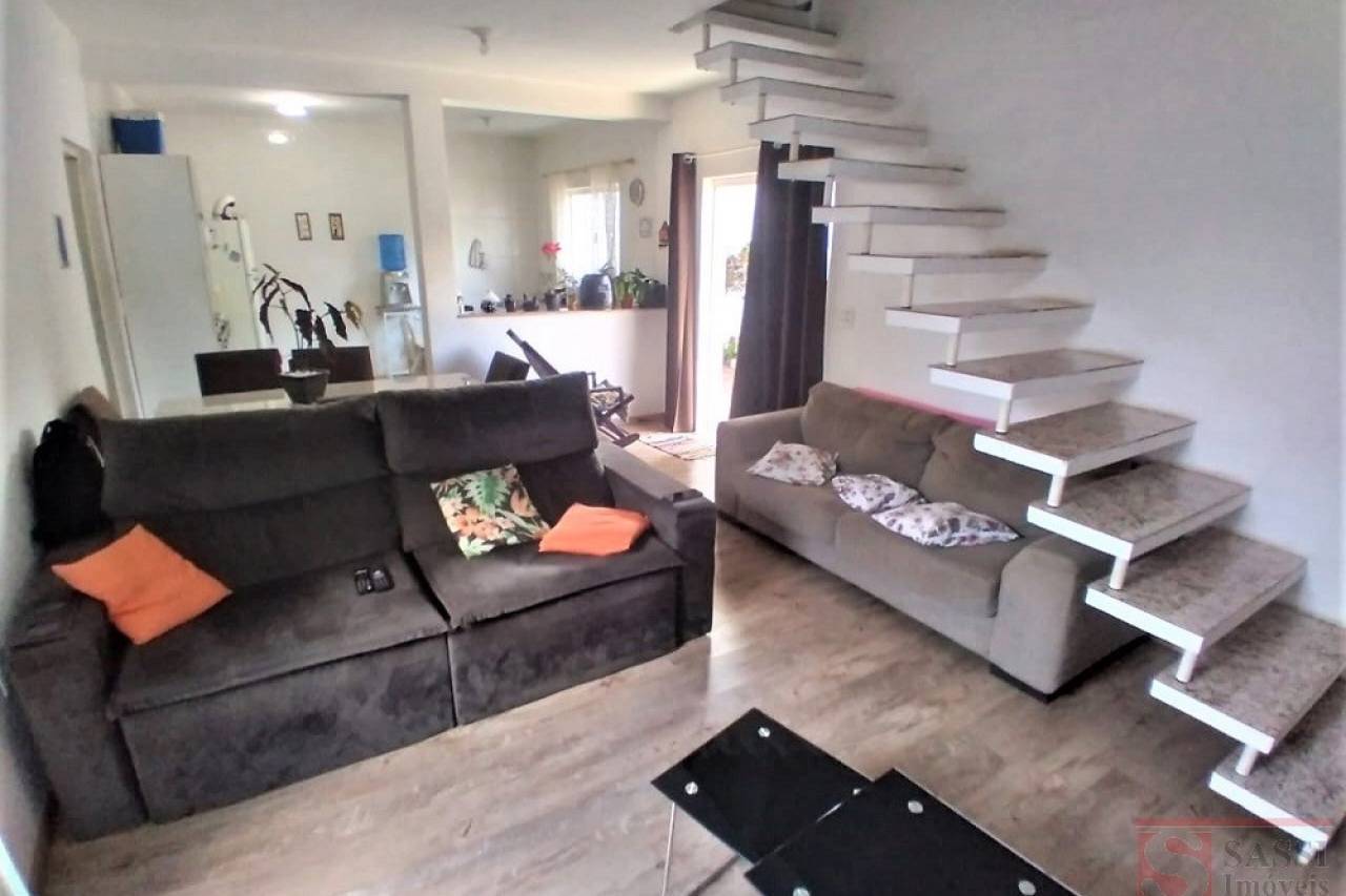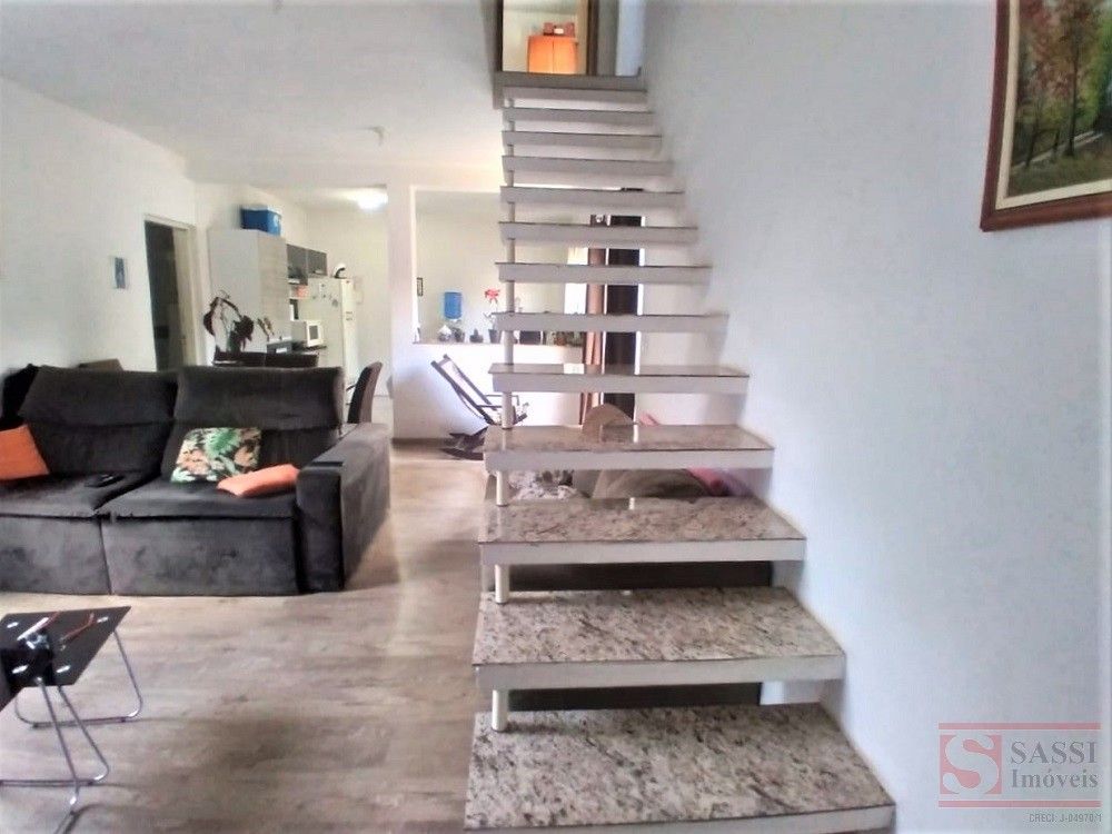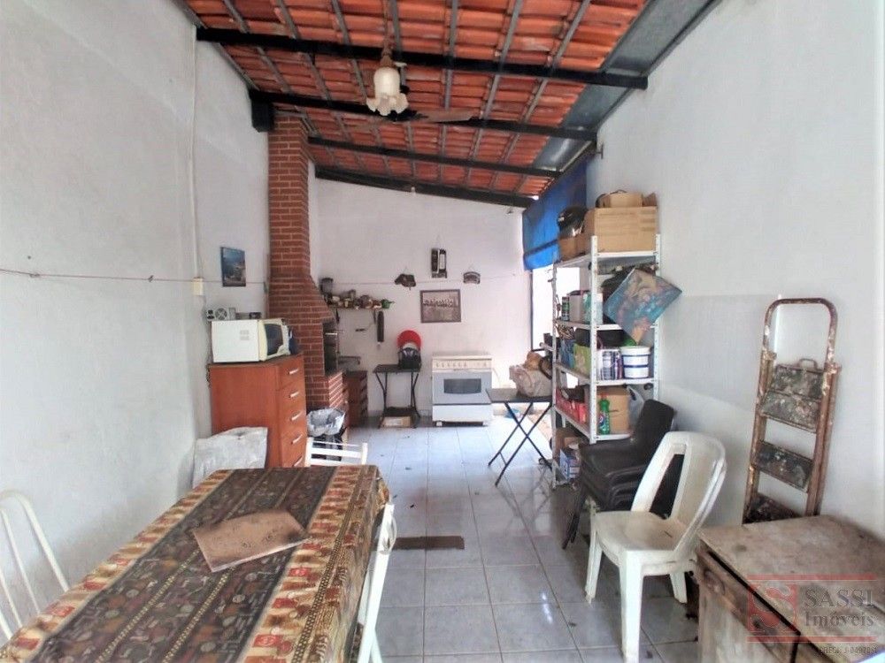 Parte inferior - sala para 02 ambientes, cozinha, banheiro, área de serviço, quintal com churrasqueira, vaga para 03 carros. Parte superior 02 quartos com varanda, banheiro social.