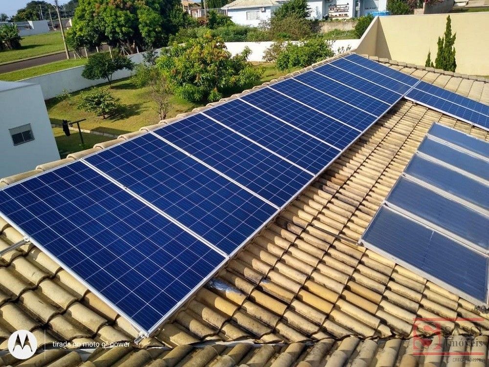 Casa térrea, 01 suíte com closet e hidro, 02 quartos com banheiro conjugado, sala de TV, escritório, ar condicionado em todos os quartos e na sala de TV, cozinha planejada, sala de jantar, área de serviço com armários, piscina aquecida com ofurô, churrasqueira, placas de geração própria de energia (02 baterias de lítio, segura 08 horas sem energia), edícula com quarto, banheiro.