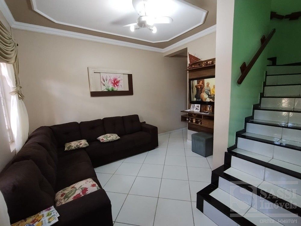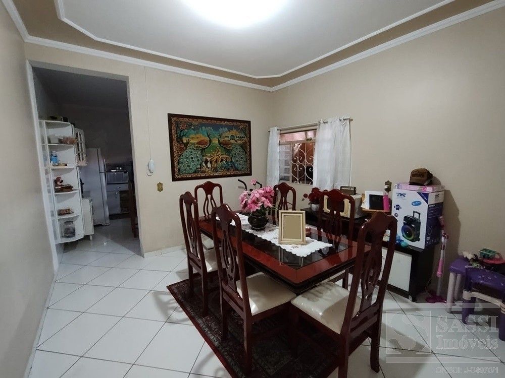 Sobrado com sala de estar, sala de jantar, cozinha, banheiro, área de serviço, rancho com churrasqueira, despejo, vaga para 02 carros. Superior - 03 quartos sendo 01 suíte (com ar condicionado), banheiro social e varanda.