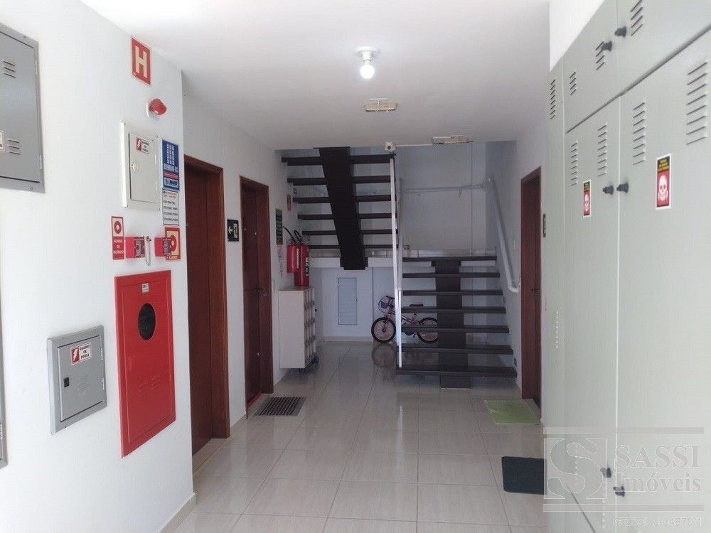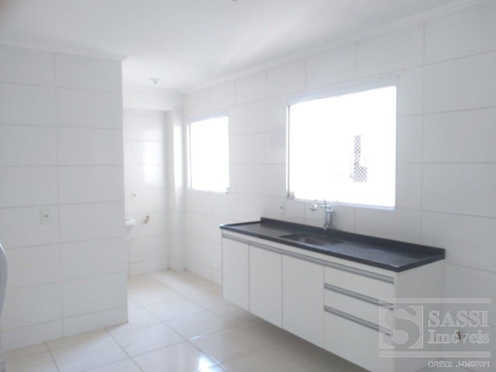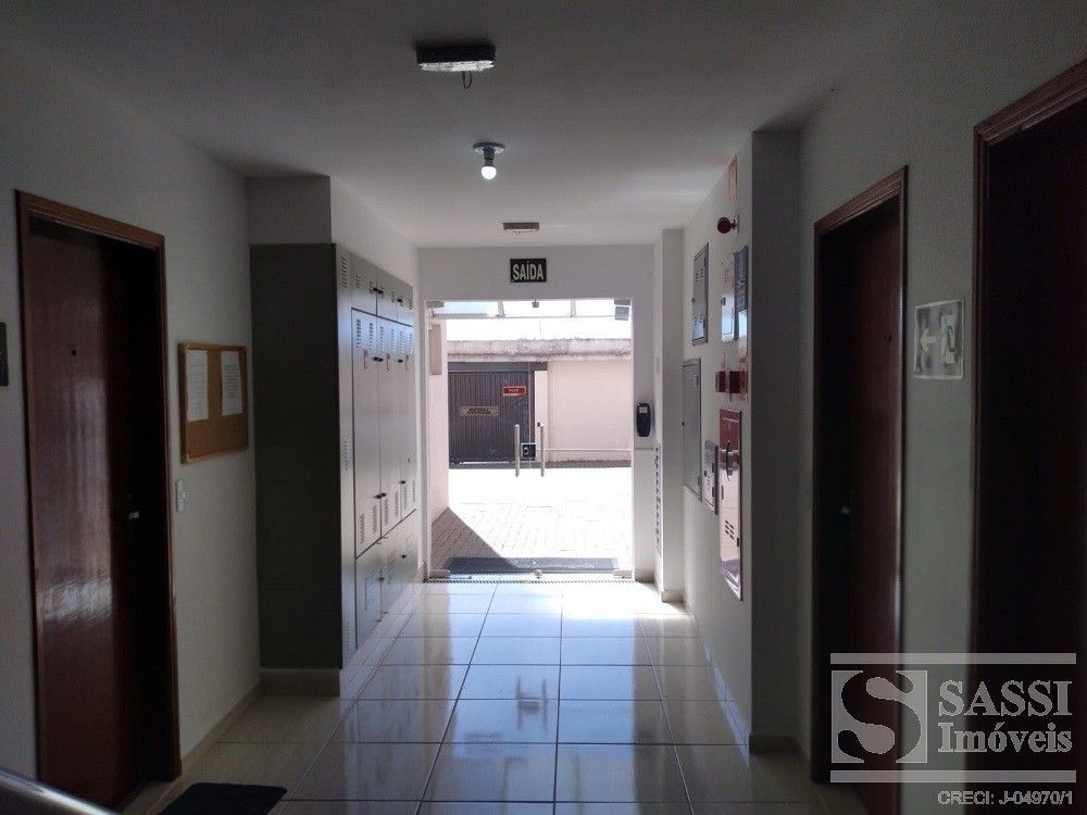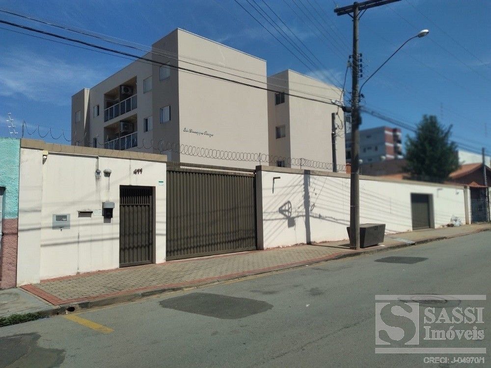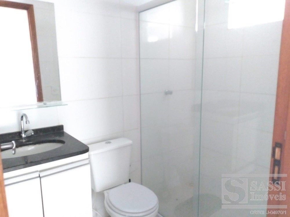Apartamento a venda com dois dormitórios, sala com sacada, cozinha com gabinete, área de serviço, banheiro com armário e uma vaga de garagem.