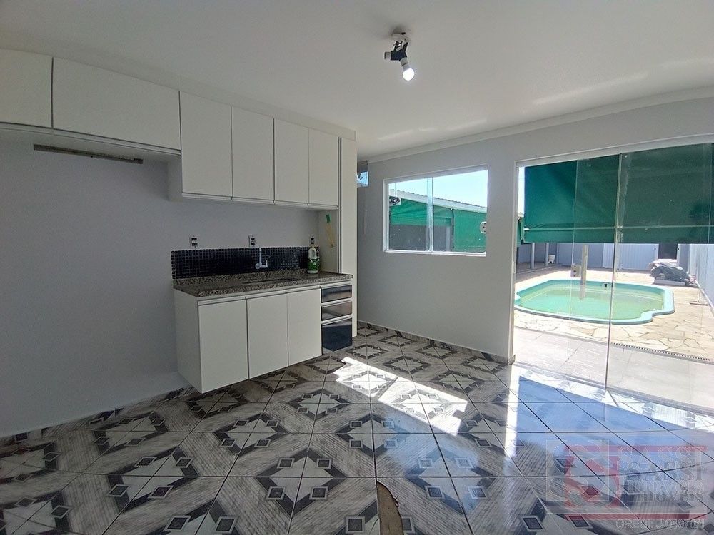 Área de lazer com 01 quarto, cozinha com armário, banheiro, varanda com churrasqueira, piscina, banheiro externo, ampla área para carros.