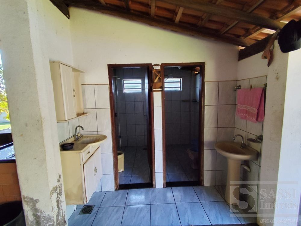 Chácara no asfalto com 4.600,00m² de terreno, com muita área verde, 2 pomares frutíferos bem diversificado, campo de futebol, piscina, chiqueiro, despejo, galpão garagem para 4 carros.Casa com 2 dormitórios, sala, cozinha, banheiro, lavanderia, varanda e uma enorme área gourmet com churrasqueira, salão e banheiros masculino e feminino.Totalmente cercada de alambrado.